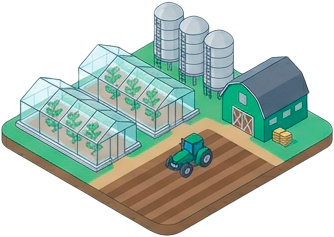 Производственные объекты, животноводческие комплексы, зернохранилища, перерабатывающие предприятия.